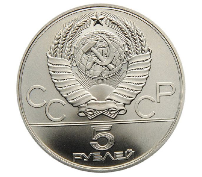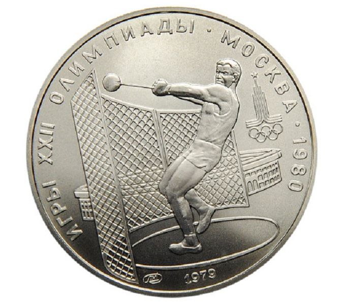 Серебряная монета 5 рублей 1979 «Олимпиада 80 — Метание молота» ЛМД