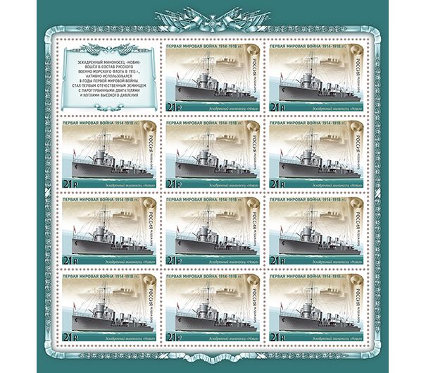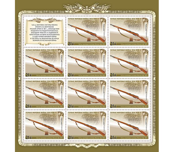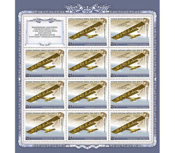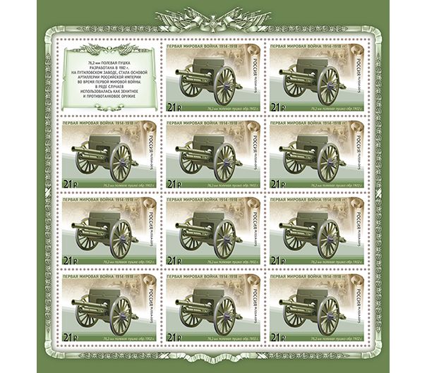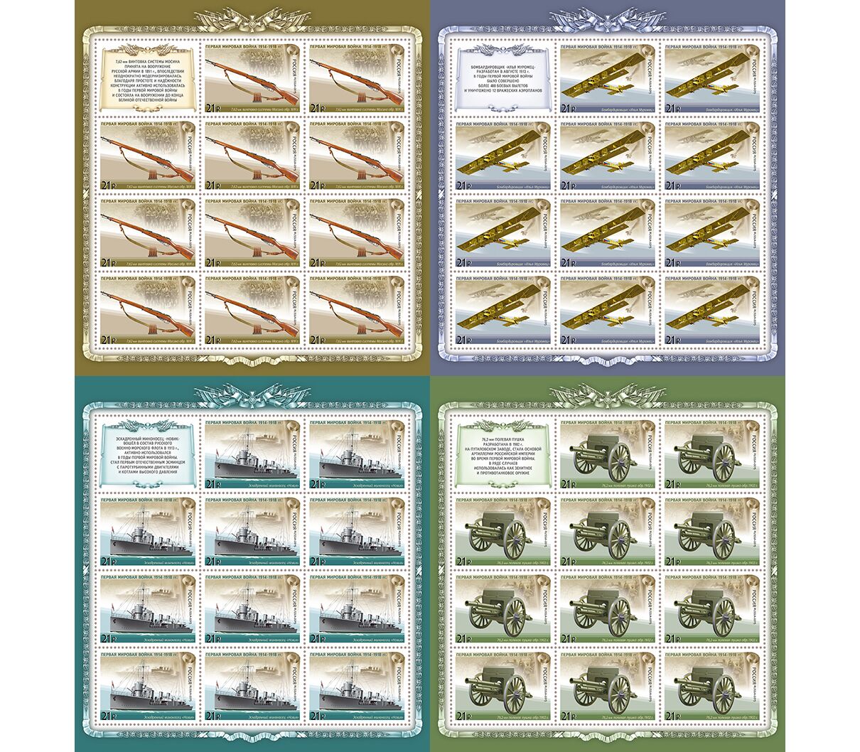 4 листа из серии «История Первой мировой войны». На каждом листе размещено по 11 почтовых марок одного сюжета с купоном. Тираж каждого листа — 36 000 экземпляров.