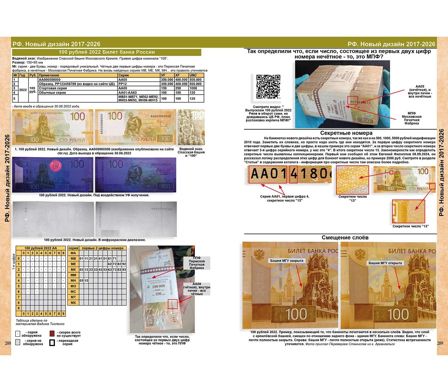 В пятом выпуске каталога «СССР и России 1917-2026» авторы уделили большое внимание ценам, новым сериям и фотографиям водяны знаков банкнот, выпущенных за указанный период. Каталог сопровожден таблицами с указанием цен и характеристик, а также фотографиями банкнот и т.п.