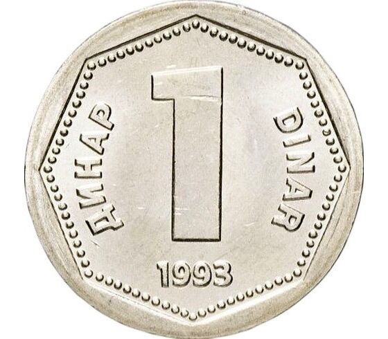 В наличии монеты регулярного чекана Югославии. В частности, в нашем магазине Вы можете приобрести монету номиналом 1 динар, выпущенную в 1993 году.