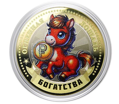 Украсьте праздник подарком с глубокой символикой — новогодней монетой Года Лошади 2026. Яркая монета продается в красочной блистер-открытке, отражающей дух праздника, энергетику и динамику года.