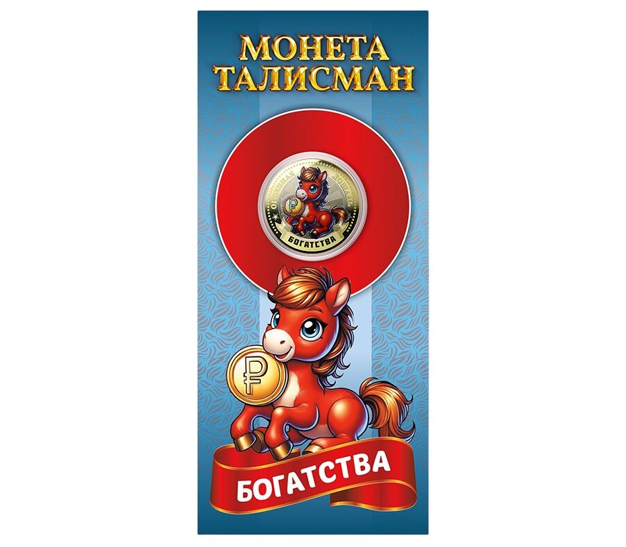 Монета 10 рублей «Год Лошади 2026 — богатства» в открытке