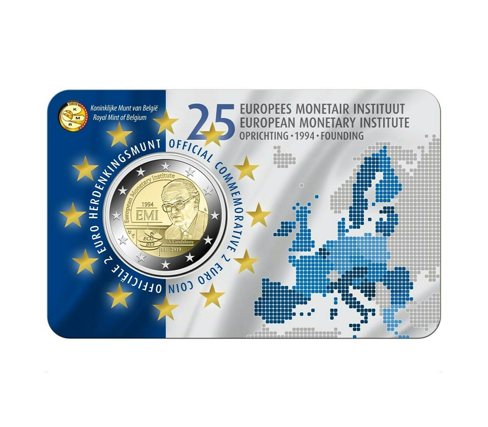 Монета 2 евро 2019 «25-летие Европейского валютного института» Бельгия (в коинкарте)