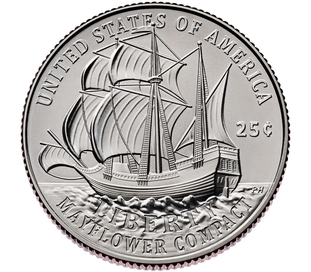Монета достоинством 25 центов «Мэйфлауэрский договор» — первая из пяти монет, выпуск которых запланирован на 2026 год в рамках празднования 250-летия независимости США.