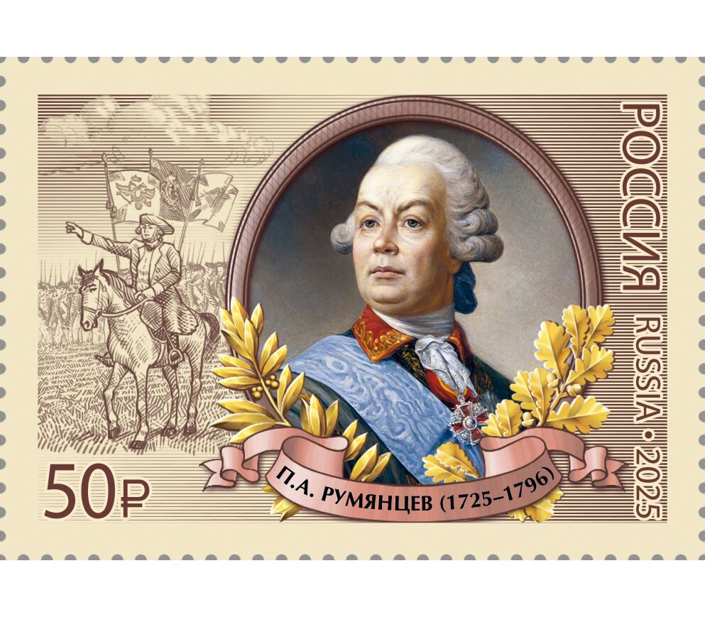 Почтовая марка «300 лет со дня рождения П.А. Румянцева, полководца, военного теоретика» 2025