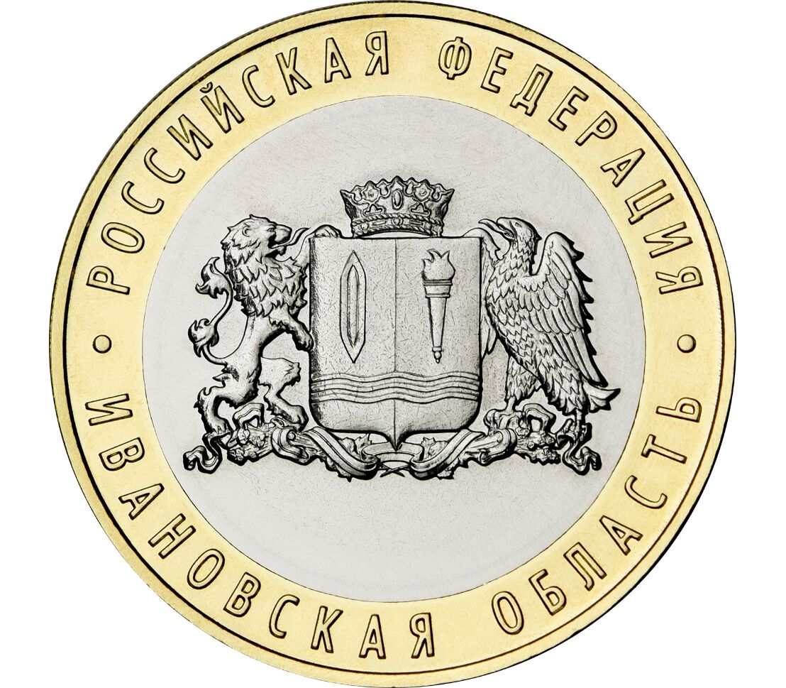 Монета 2022 года номиналом 10 рублей из серии «Российская Федерация» (также называют «Регионы России»). Выпуск посвящен Ивановской области — субъекту РФ, располагающемуся в Центральном Федеральном округе.